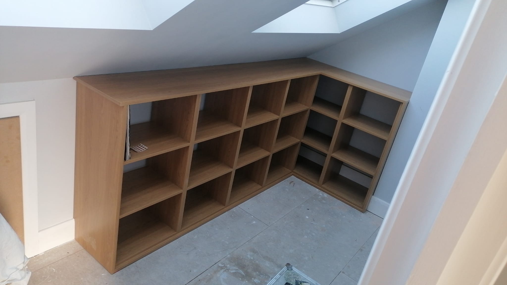 The space was compact, with sloping ceilings and limited clearance — but we were confident we could make it work. We designed a clean, functional layout that would maximise storage without overwhelming the room.