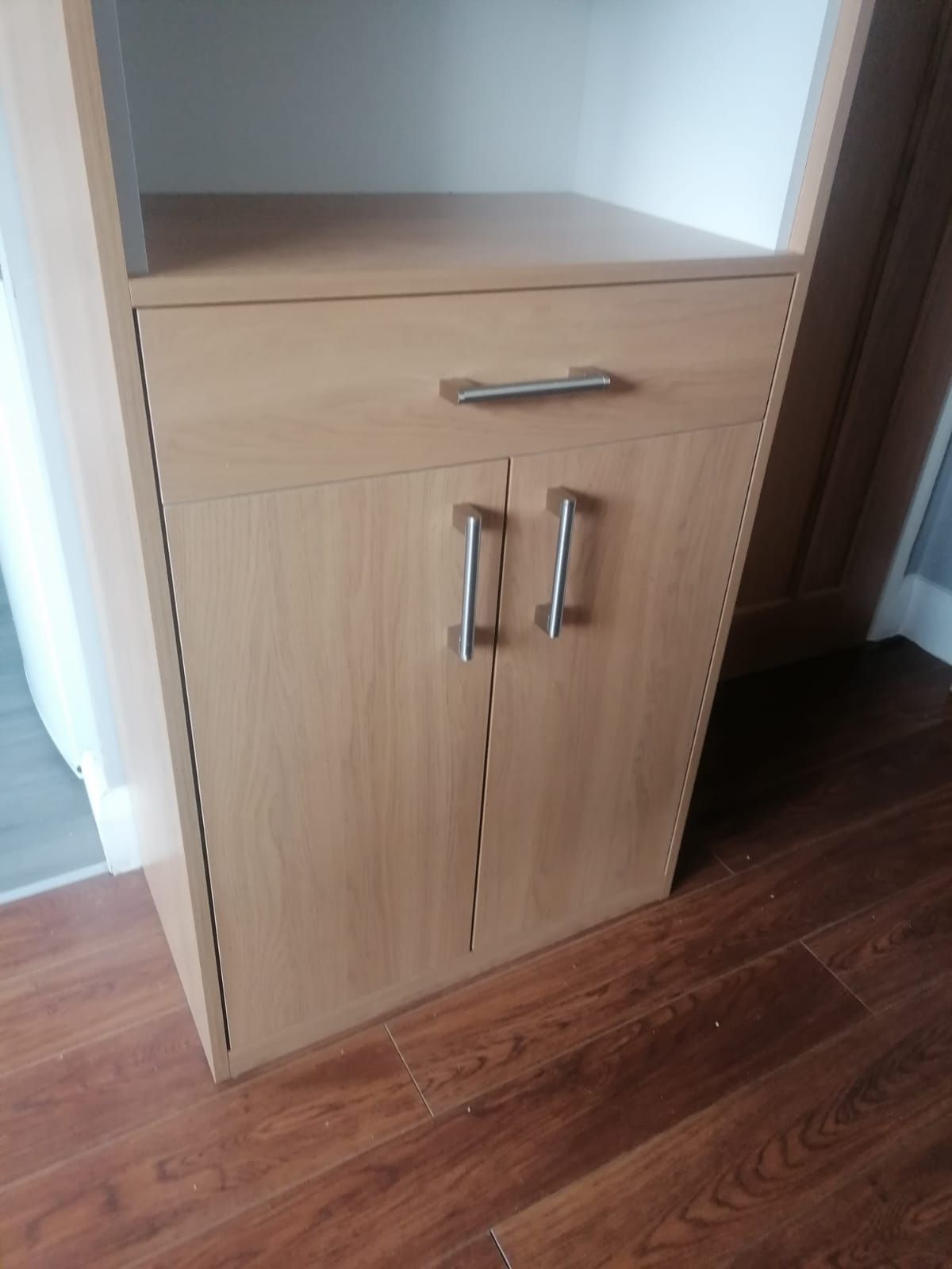 Because this corner sits in a communal area, the proportions and detailing mattered. The unit needed to feel intentional, not improvised. The finished piece achieves that balance: it’s compact enough not to dominate the room, but substantial enough to feel like a proper furniture item rather than a temporary fix.