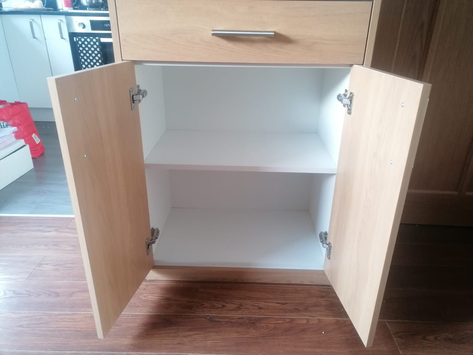 Inside, the unit is all about practicality. Adjustable shelving, deep compartments, and a spacious drawer give every item its place. The white interior keeps it bright and easy to organise, while the timber exterior ties it into the rest of the home.
